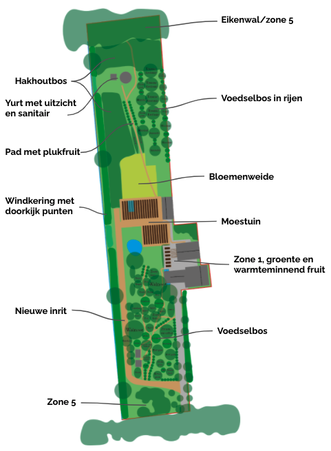 Zone 2: Moestuin, voedselbosje en kippen